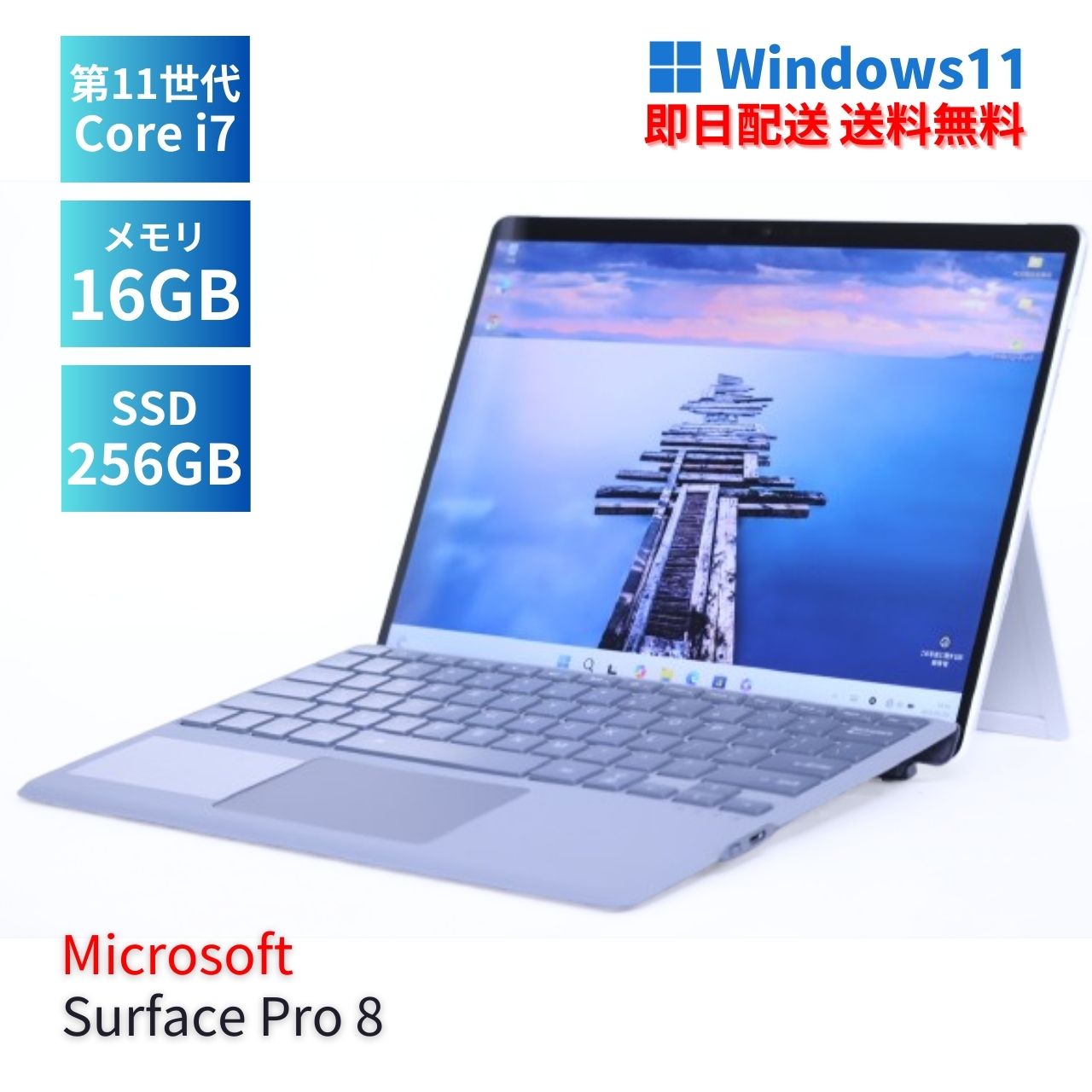 【メーカー / シリーズ】 Microsoft Surface Pro 8 ノートパソコン タブレットPC 【CPU】Core i7-1185G7 3.00GHz / 4コア8スレッド / ターボ・ブースト最大4.80GHz 【メモリ】16GB 【ストレージ】SSD 256GB 【ディスプレイ】13.0インチ PixelSense Flow タッチパネル 解像度 2880x1920 ※カテゴリ--13.0~13.9インチ 【グラフィック】 Intel(R)内蔵グラフィックス 【光学ドライブ】 -- 【サウンド】Dolby Atmos オーディオ搭載 2W ステレオ スピーカー 【センサー】加速度計、ジャイロスコープ、磁力計、光センサー 【Webカメラ】 搭載 【無線LAN】 Wi-Fi 6(IEEE802.11ax)対応 (Surface Pro 7+/8のみ) 【W-WAN】●選択可 ・W-WAN搭載(LTE・eSIM対応) ・W-WAN非搭載 【その他装備】 Bluetooth (※その他インターフェースは画像とメーカーページ等でご確認ください。) 【オプション】 ※画像のタイプカバーキーボードはオプション品。 ・ご希望の場合、別途6,380円(税込)にて同梱可能。 ※英字キーボード(日本語入力可)、Bluetooth接続、充電式(Surface本体より給電)、純正同様マグネット装着、設定説明書付属 【OS】 Windows11Pro-64bit(DtoDリカバリ有) 【Officeソフト】 LibreOffice(標準搭載、MicrosoftOfficeとの互換性高い) 【ウイルス対策】 Windows Defender、Windowsファイアウォール 【寸法/質量】287 mm x 208mm x 9.3 mm/重量:約 891g(本体のみ) (仕様・構成により変動する場合あり) 【付属品】 ACアダプタ(社外品またはUSBType-Cの場合あり) 【メーカーページ】(スペック完全一致でない場合あり) Surface Pro 8 【取扱説明書】(機種・型番完全一致でない場合あり)。 Surfaceサービスガイド